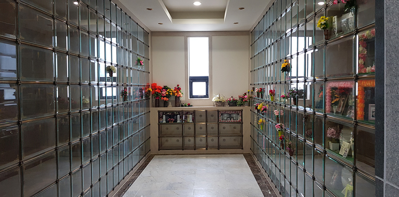 리모델링 하여, 호텔식 분위기를 갖추고있으며 24365기의 고인을 모실 수 있는 규모의 납골당 입니다.